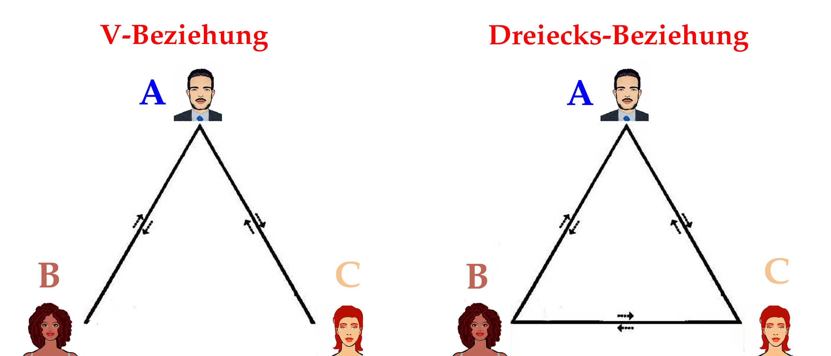 V-Beziehung: A hat separate sexuelle Beziehungen zu B und C, aber B und C haben keine sexuelel Beziehung miteinander.